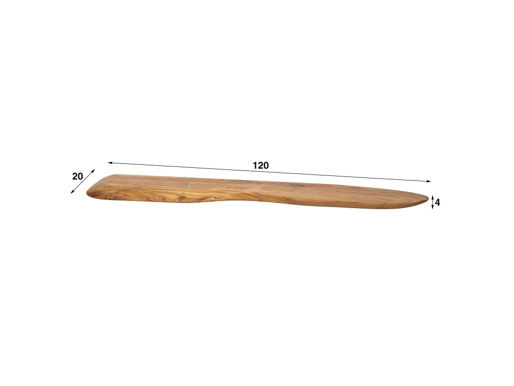 Nástěnná police Organic je vyrobena z akáciového dřeva a je povrchově upravena matným, průhledným lakem, který jemně zvýrazňuje přirozenou kresbu dřeva. Organický tvar a teplé tóny dodávají poličce uklidňující vzhled.
