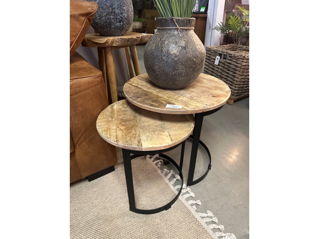 sada 2ks konferenčních/odkládacích stolků, vel: dia 53x51cm , dia 43x43cm, masiv mango dřevo, železná podnož