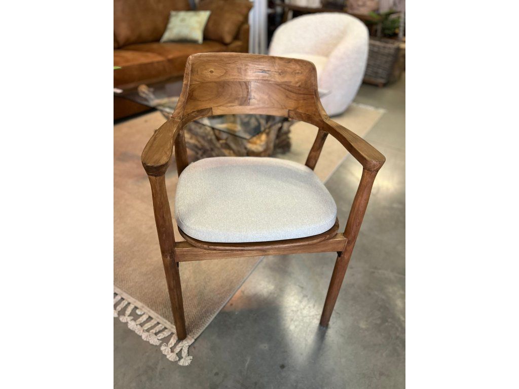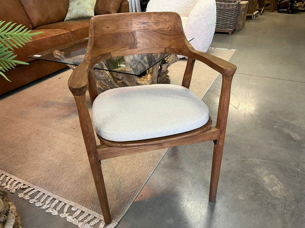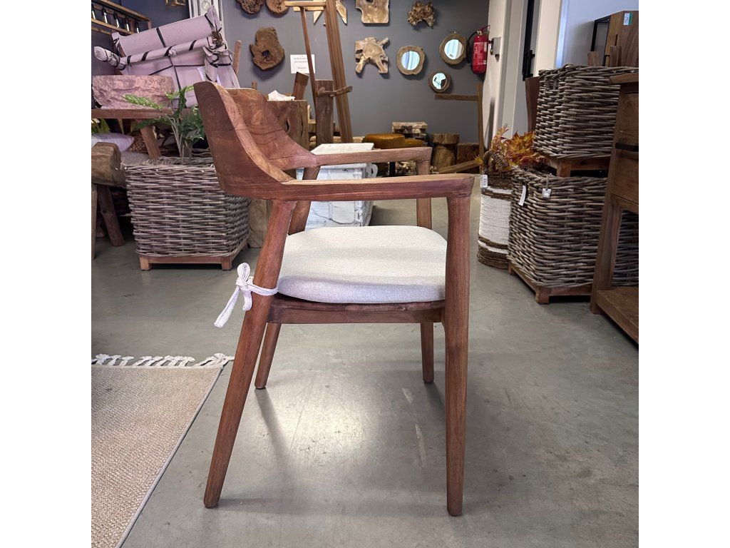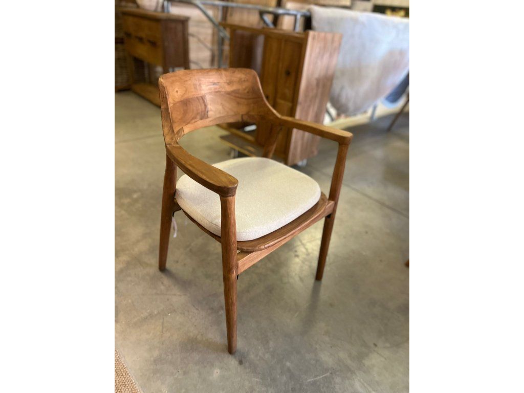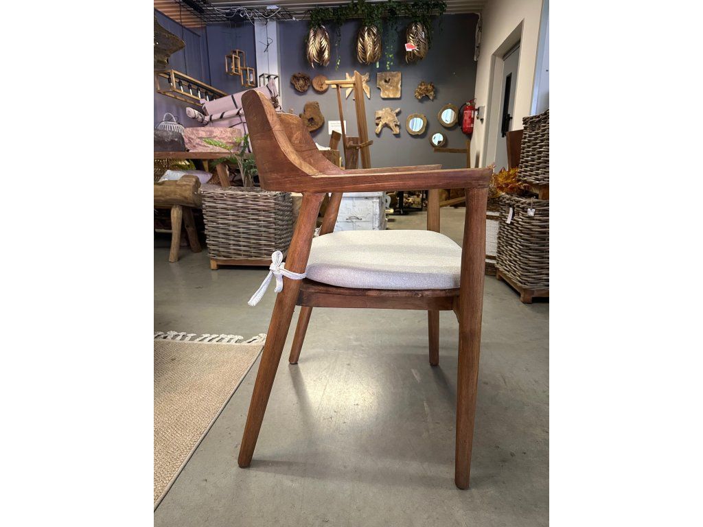 Teaková židle ZIMAN s béžovým polstrem. rozměr: 57,5 x 52 x 42,5/75 cm, teak recyklovaný masiv, povrch hladký
