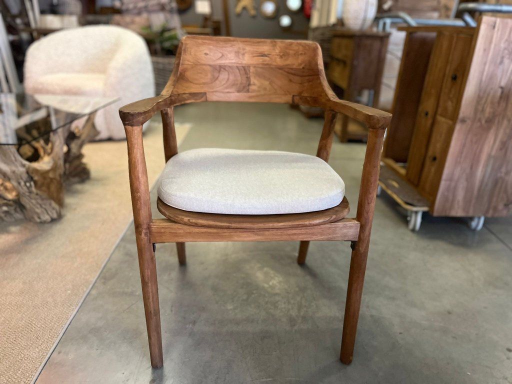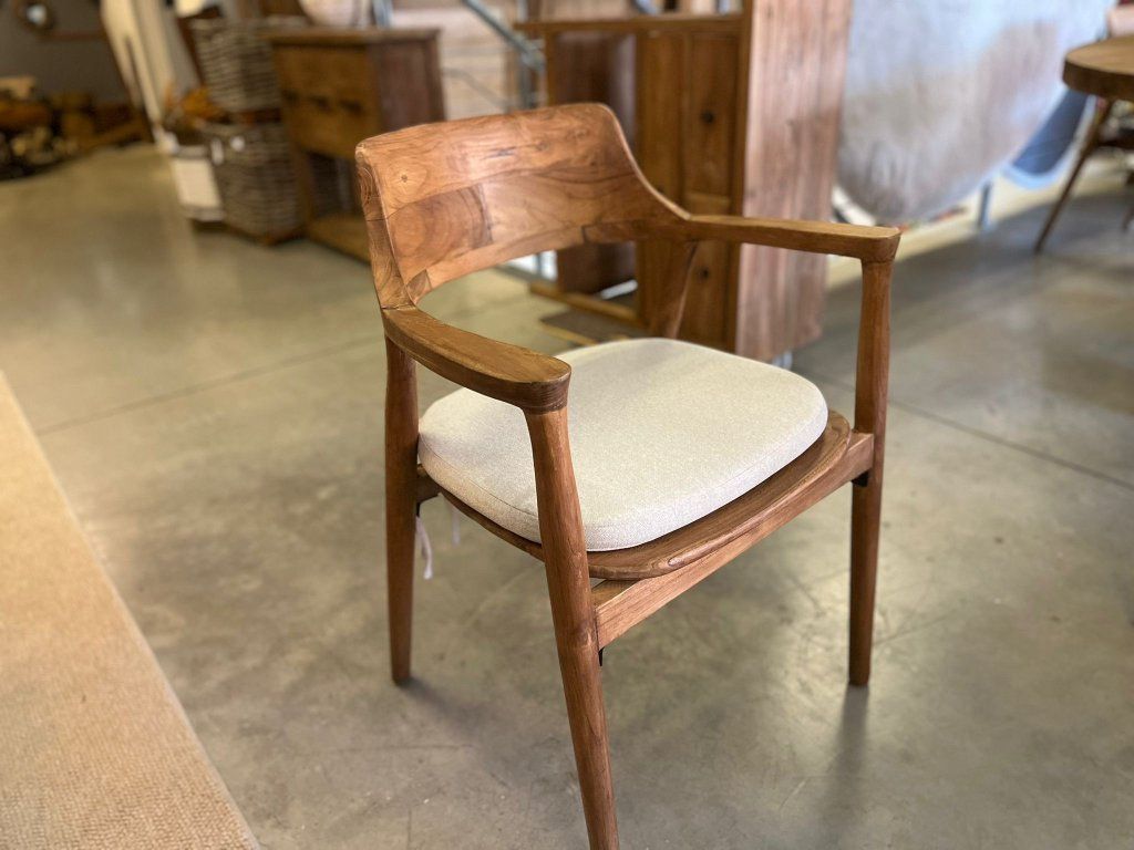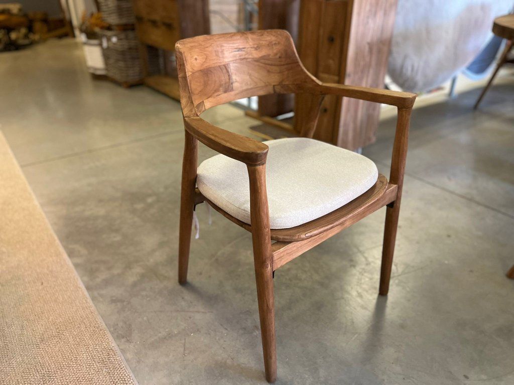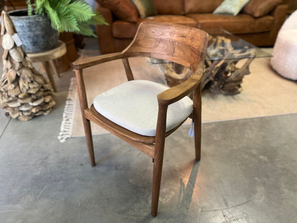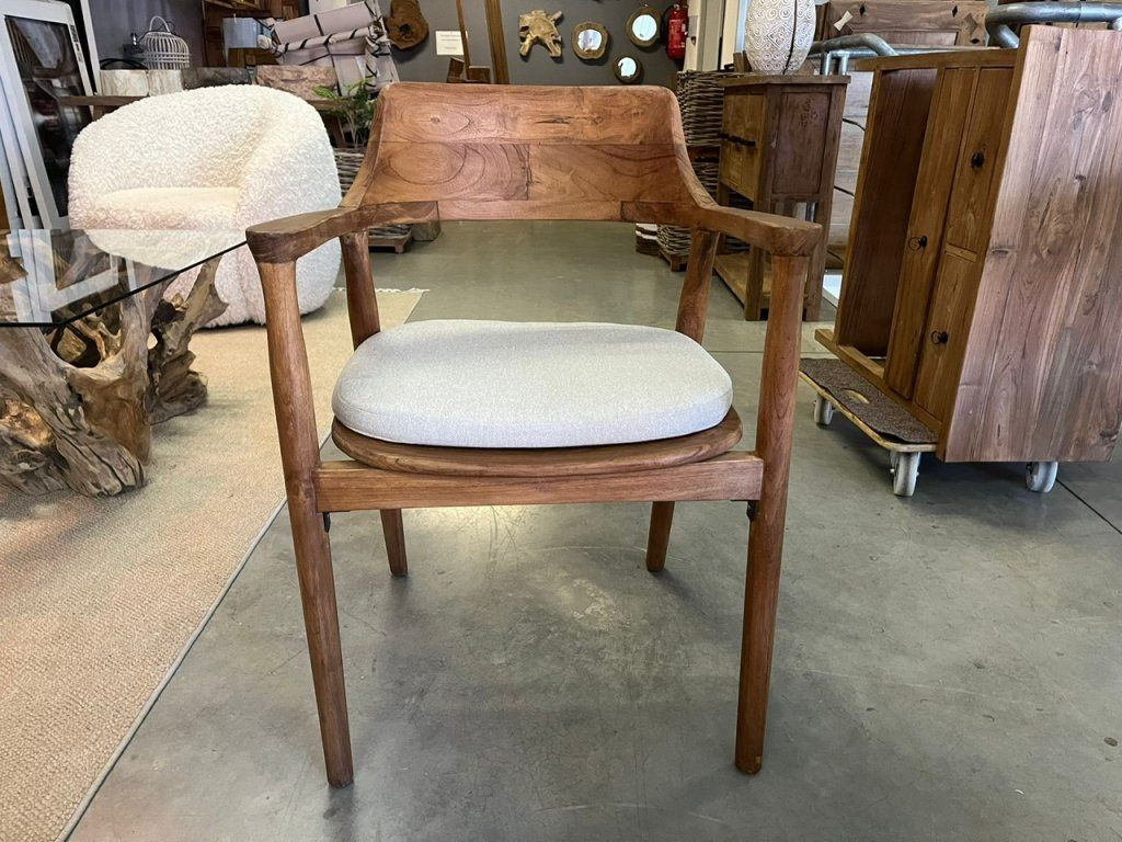 Teaková židle ZIMAN s béžovým polstrem. rozměr: 57,5 x 52 x 42,5/75 cm, teak recyklovaný masiv, povrch hladký